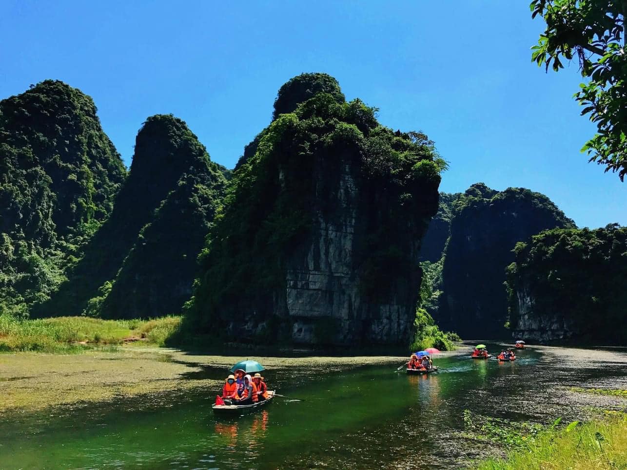 13.30 Pm. Our limousine will pick up and get on the limousine continue going to visit Tam Coc wharf for taking the sampan go along the Ngo Dong river to visit Tam Coc (three different caves). for the boat ride where you will see how amazing of the landscape, with spectacular of the view, see the rice paddies fields, and see the cave and thousands of limestone mountain emer on the lands, you will have 1,5 hours to enjoy the boat ride in Tam Coc